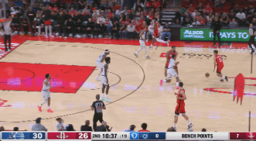 在属于谢泼德的这段时间里,谢波德扮演的并不是一个以激活体系、带动队友为首要目标的控球后卫,更像是一个以投射为主要进攻手段的得分后卫,传球只是备用选项,尽情施展自己卓越的投篮才能才是谢波德在扮演这一角色时的首要目标。